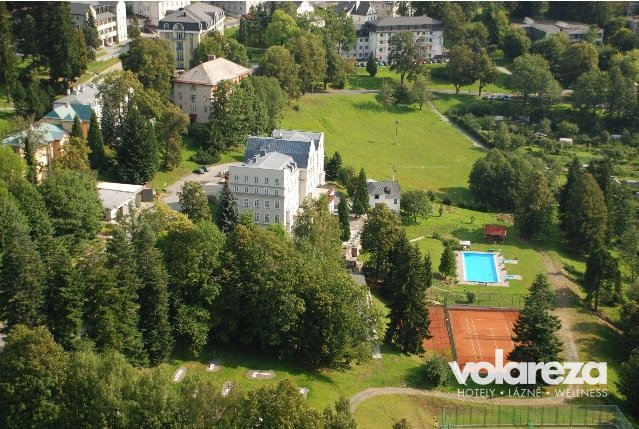 Spa treatment facility resort is located in the attractive mountain area Jeseníky, at the altitude of 620 m. The buildings of the resort are situated on the southern slope of the hill and offers a breathtaking view of the whole ridge of Hrubý Jeseník and of Jeseník city (www.jesenicko.eu). The picturesque center of Jeseník spa town, other spa houses, spa park and promenade with its curative springs is located at a distance of about 300m.