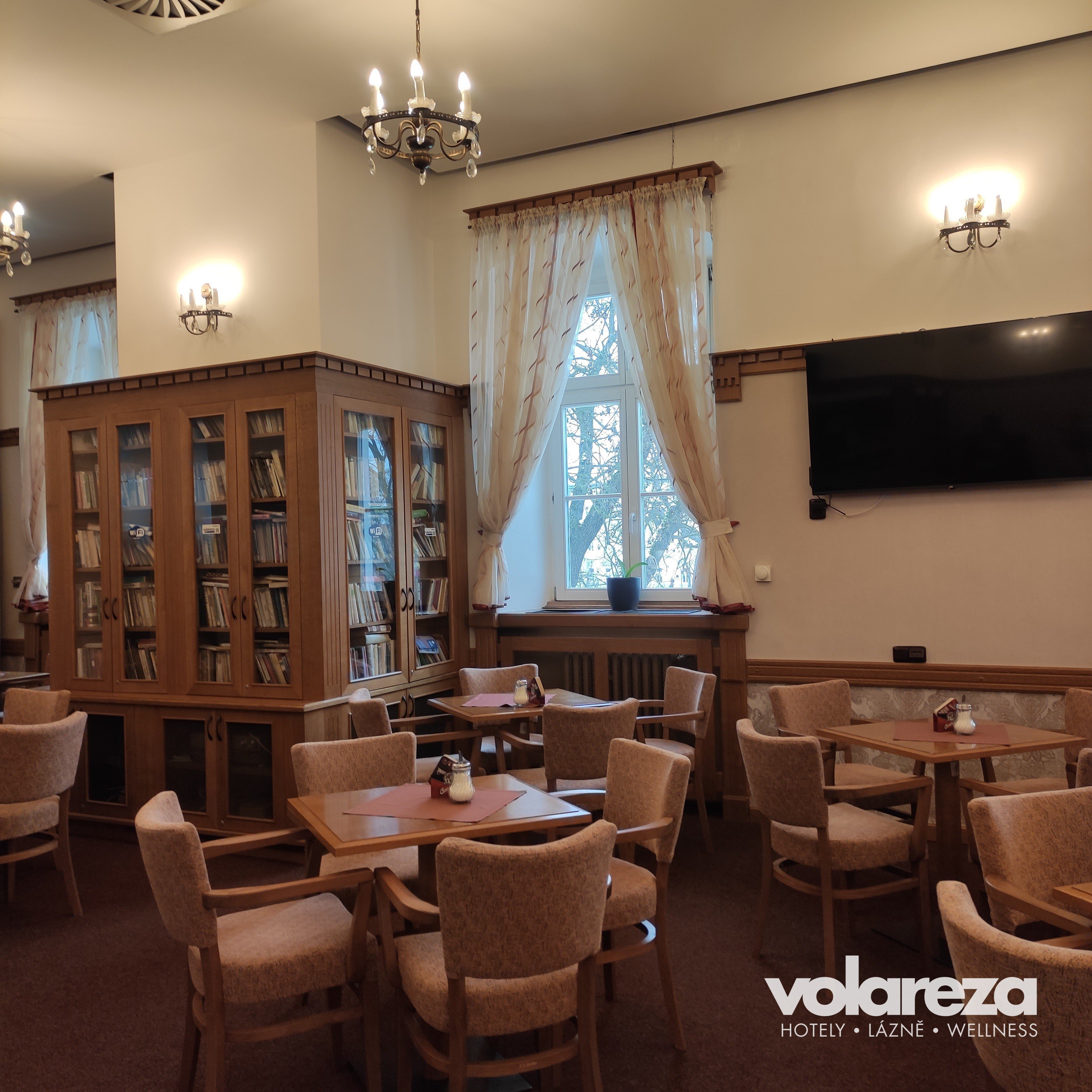 Кроме того, у проживающих клиентов есть возможность взять в кафе книгу или посмотреть телевизор с большим экраном.